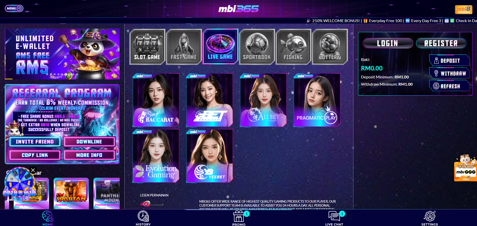 If you’re looking for online casinos in Malaysia with a top provider, then you’ve indeed found the perfect spot! At mbi365, we have many premium casino games, including popular slots like Mega888. Whether you’re in the mood for slots, roulette, blackjack, or engaging real-time online live casino games, you’re sure to be entertained. As an mbi365 player, starting with a 150% welcome bonus, and continuing with a wide range of exciting promotions.